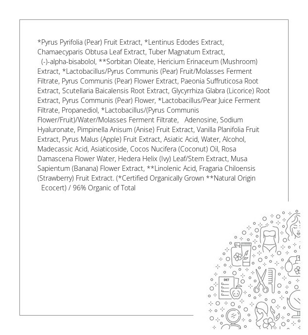 To rewitalizujący tonik-esencja będący codziennym zastrzykiem świeżości dla promiennej, zdrowo wyglądającej skóry. Zawiera ekskluzywną mieszankę organicznych ekstraktów roślinnych oraz wysoko skoncentrowany kompleks Flower Radiance Complex™, który działa rozjaśniająco, wyrównuje koloryt i nadaje cerze naturalny blask. Dzięki fermentowanym ekstraktom z kwiatu i owocu gruszy skutecznie wspiera redukcję przebarwień pigmentacyjnych i delikatnie równoważy skórę, a ekstrakty z białej trufli oraz innych roślin bogatych w witaminy i antyoksydanty dodatkowo ją odżywiają i chronią. Proces fermentacji zwiększa biodostępność substancji aktywnych, co sprawia, że składniki działają szybciej i skuteczniej. Tonik ma wegańską, certyfikowaną formułę opartą w 96% na składnikach organicznych, wolną od syntetycznych konserwantów, sztucznych zapachów i barwników, dzięki czemu jest odpowiedni nawet dla skóry wrażliwej.